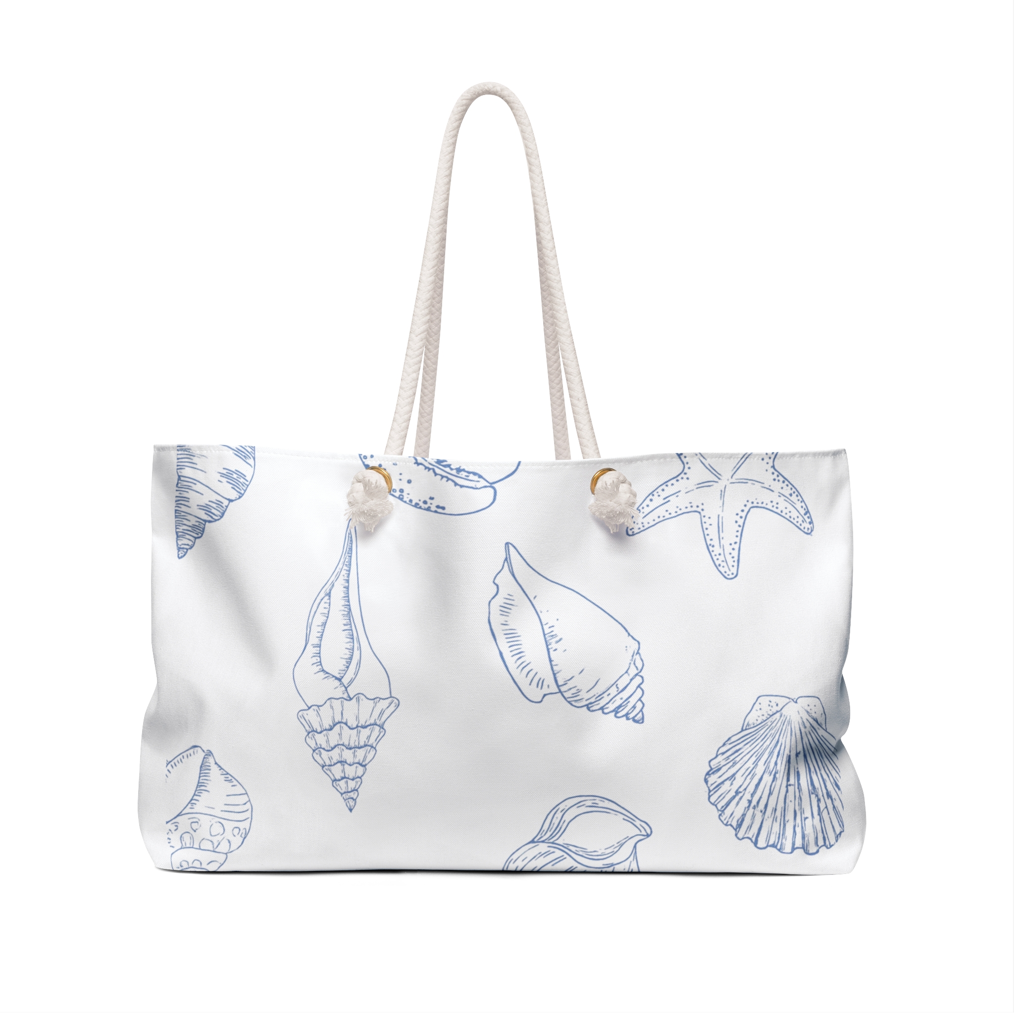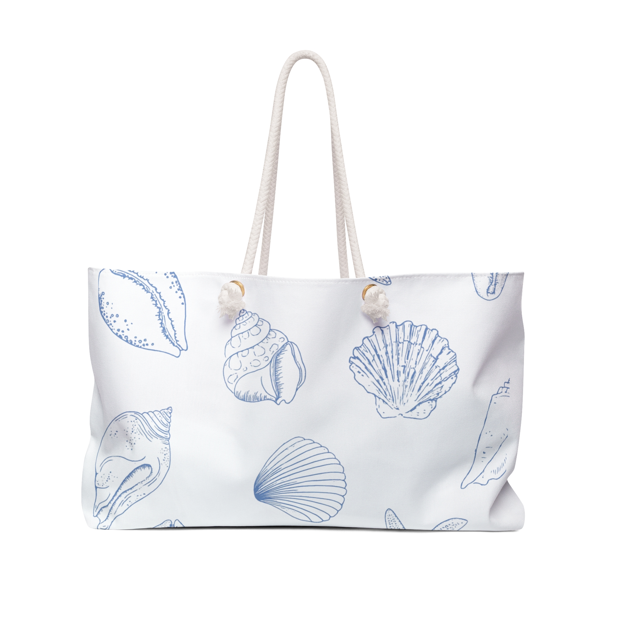 Capture the essence of the beach with the Seashell Weekender Bag. Perfect for weekend getaways or trips to the coast, this spacious and stylish bag is ideal for those who love the ocean and seashells. The cream-colored rope handles and seashell design give off a breezy and relaxed vibe, making it a great accessory for summer holidays and beach vacations.